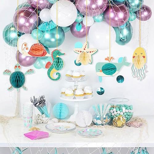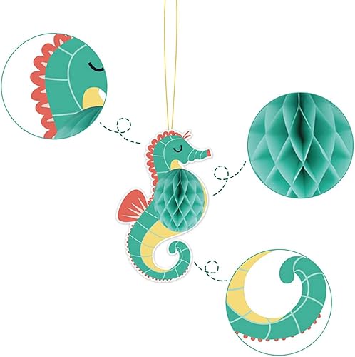 ANCLLO Lot de 6 décorations de fête d'anniversaire en nid d'abeille sur le thème de l'océan pour enfant