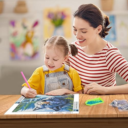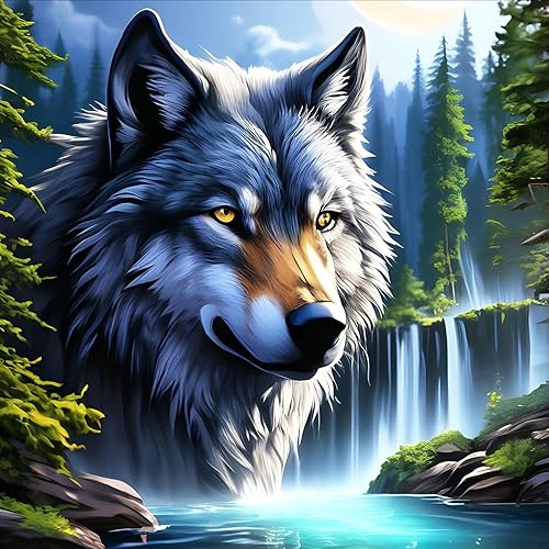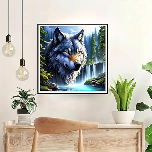 QQYRHN 5D DIY Loup de la Forêt Kits de Peinture Diamant, Complète Cascade Diamond Painting pour Adulte Débutants, Fantaisie Art du Diamant, Décoration Murale Maison Peinture au Diamant Avec 30x30 cm