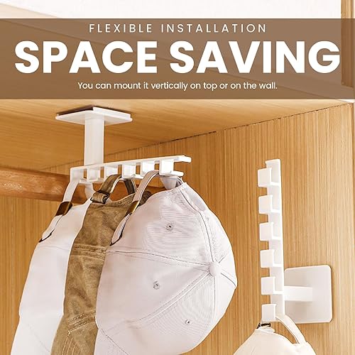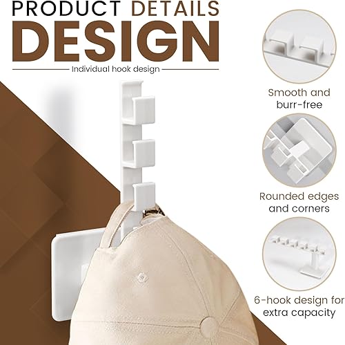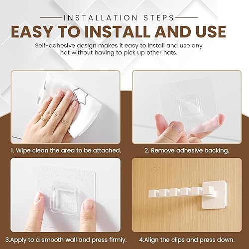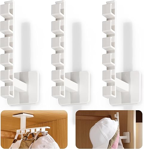 Realand Lot de 3 porte-chapeaux pour casquettes de baseball, organisateur mural avec 18 crochets, support adhésif puissant pour chapeaux, cintre de rangement pour mur, placard, porte