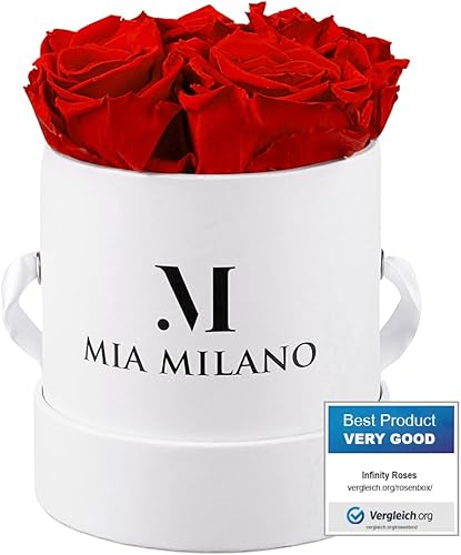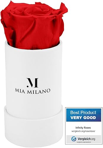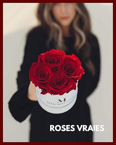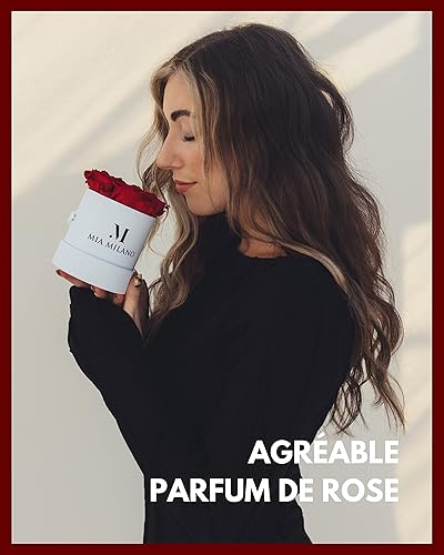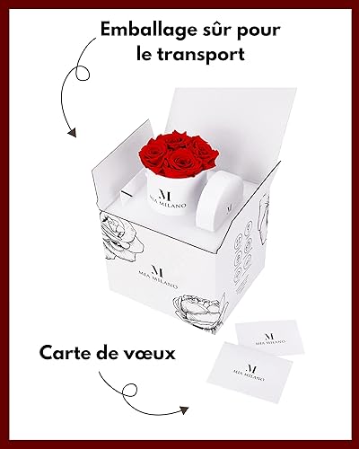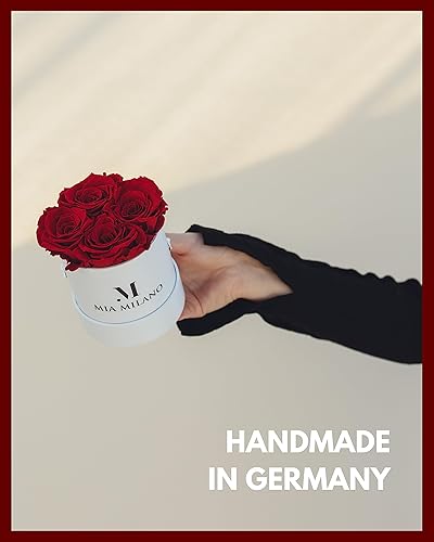 Infinity Roses Rouge en boîte - 3 ans de conservation - Boîte à roses avec 9 de vraies roses conservées I Boîte à roses Flowerbox blanche durable I Cadeau Saint Valentin I Fait main en Allemagne