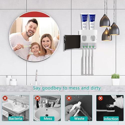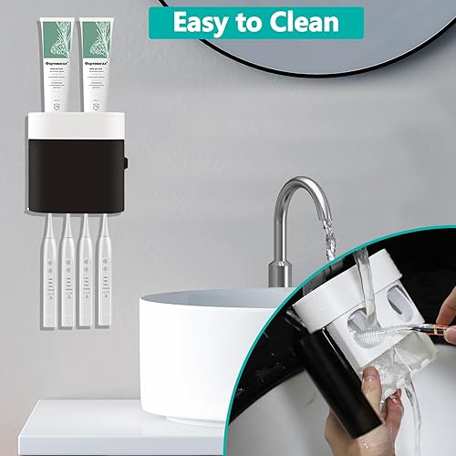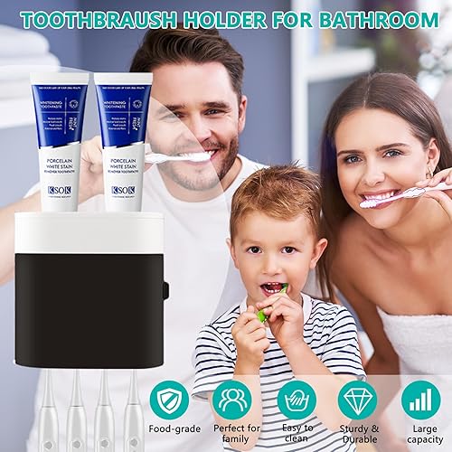 Zosenyer Porte Brosse à Dents Mural, Distributeur Automatique de Dentifrice, Support Brosse à Dents Électrique, sans Perçage, pour Familles et Bains Modernes