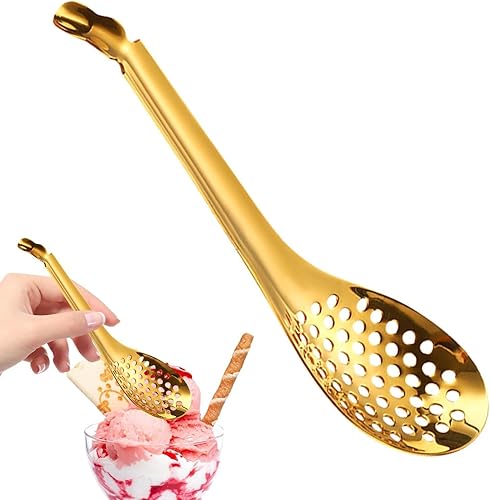 Écumoire - Passoire, Ustensile de cuisine, Cuillère de cuisine dorée ou argentée pour sauces | Ragoûts, caviar, sauces et céréales. Filtre à cuillère fendue pour la sphérification moléculaire