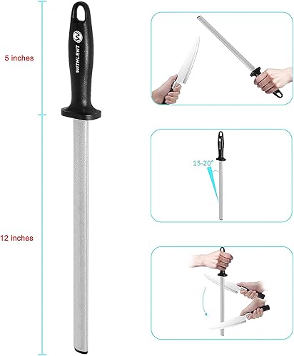 Aiguiseur à Couteaux Diamant - 31 cm Bâton à Aiguiser Affiloir - Fusil en Acier Diamanté - Affûtage Cuisine Camping Outil Coutellerie