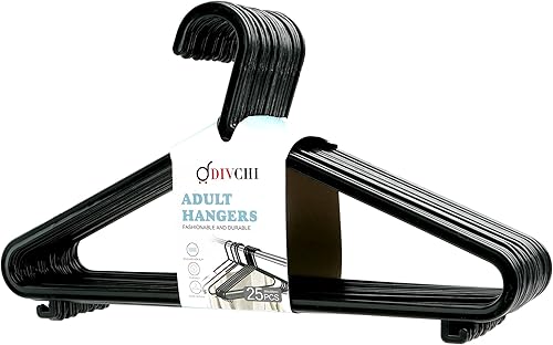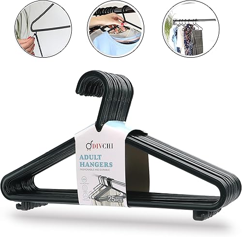 DIVCHI Lot de 50 cintres noirs pour pantalons pour adultes - Cintres robustes en plastique solide et antidérapants - Cintres d'armoire pour chemises, costumes, pantalons, écharpes, hauts (36 cm de