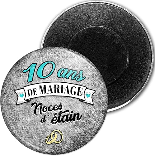Badgmania Magnet Aimant 5.9cm | Anniversaire 10 Ans de Mariage Noces d'Etain | Diamètre 5.9cm | Anneaux Mariage