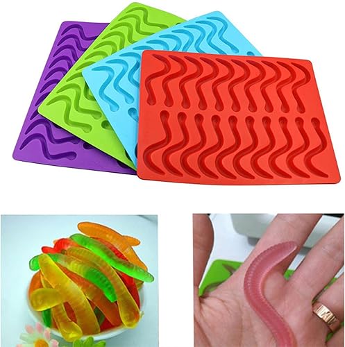 Moule en silicone à 20 cavités en forme de vers de terre pour chocolat, sucre, bonbons, gelée, fondant, décoration de gâteaux