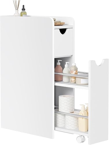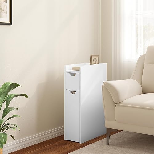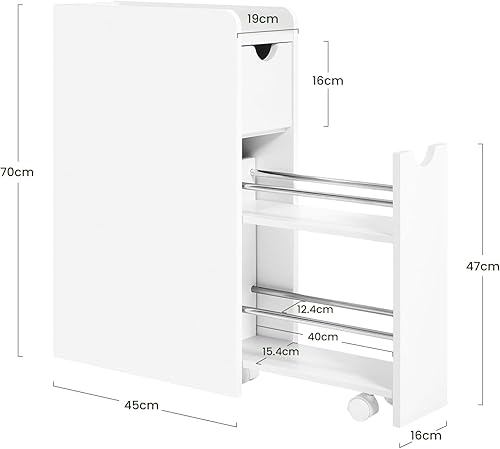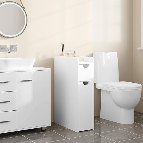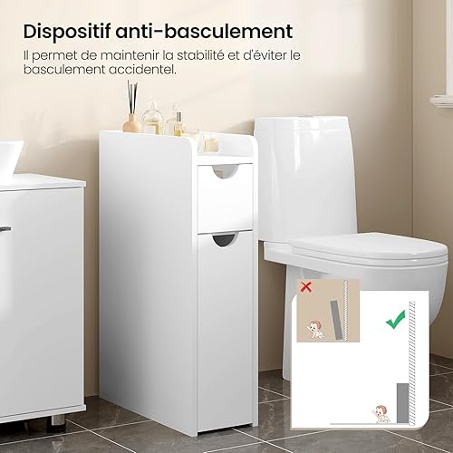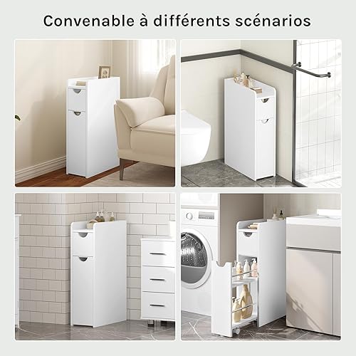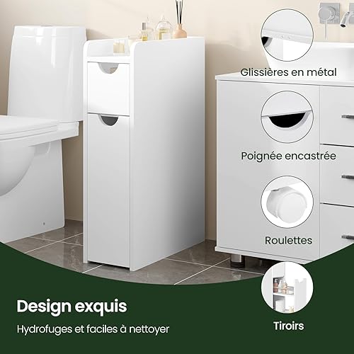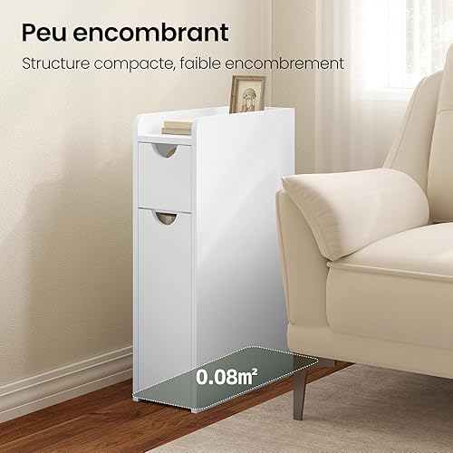 EUGAD Meuble Salle de Bain, Petit Meuble de Rangement, Armoire Salle de Bain Étroite, avec 2 Tiroirs, en Bois d'Ingénierie, Blanc, 19x45x70cm