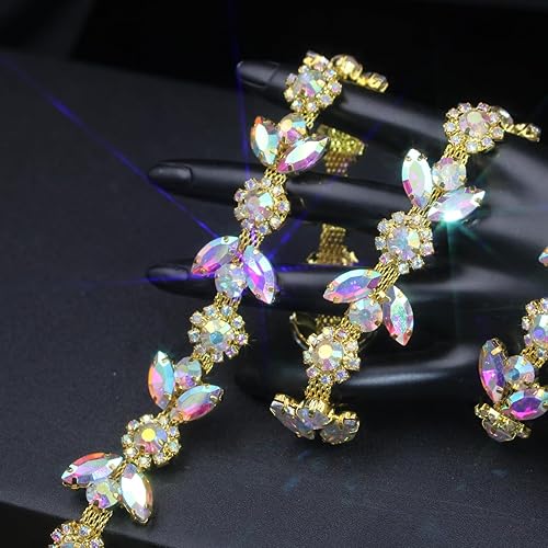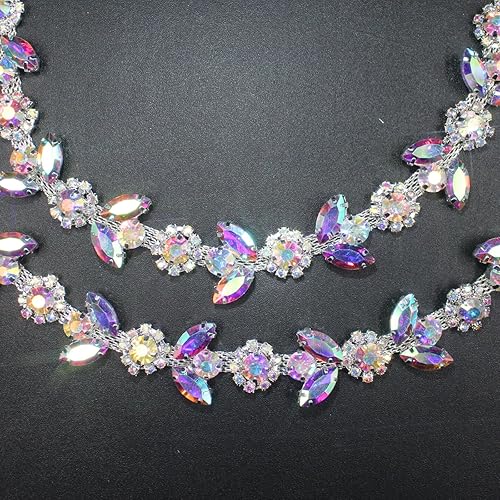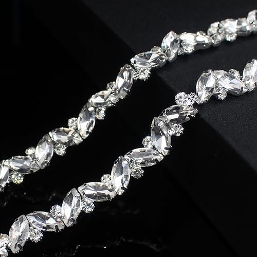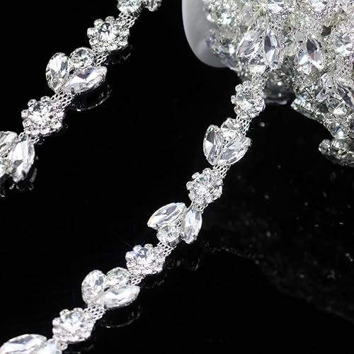 3 cour Strass Garniture Collier Argent String Cristal Florar Applique Fringe Ruban Bandes Perles Couture Robe DIY Fête Mariage Bouquet pour Décoration Mariée Costume Ornement