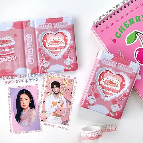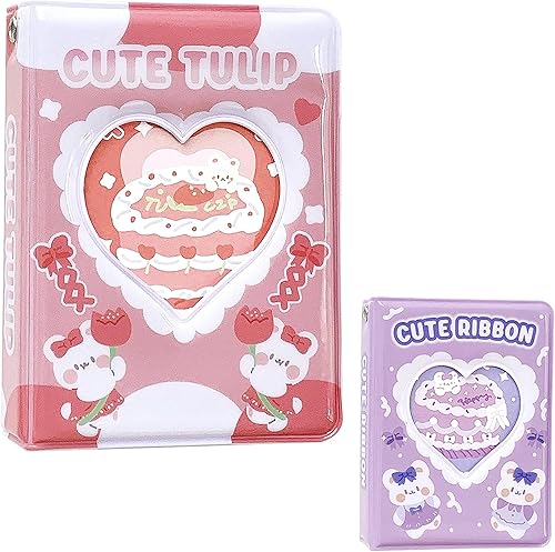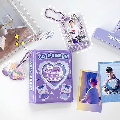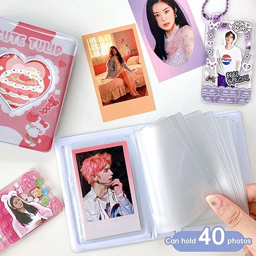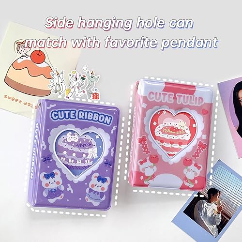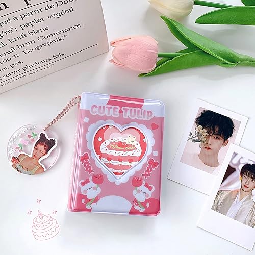 Porte-carte photo Kpop de 3 pouces, 2 pièces album photo, petit mini album photo, cakes love heart, hollow 40 poches, livre de cartes nom, album photo fans avec pendentif