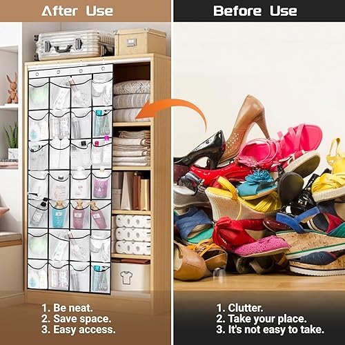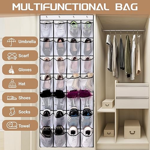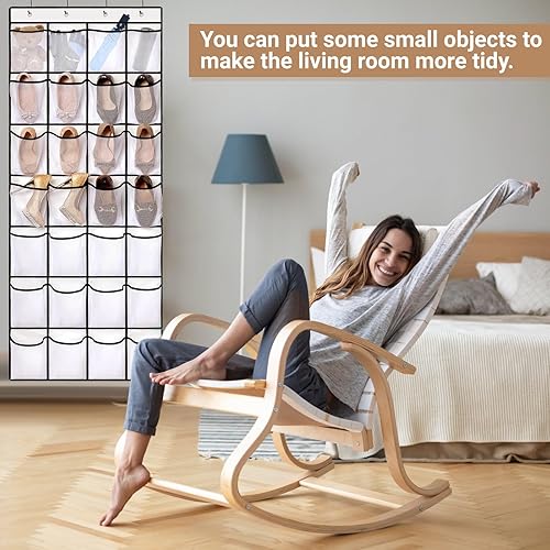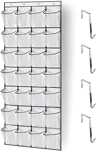 Blanc Pliable Porte-chaussures Suspendu, Rangement de Chaussures Suspendu avec 4 Crochets, Respirante Rangement de Chaussures avec Grandes Poches, Organiseur de Porte Suspendu pour Home Placard Office