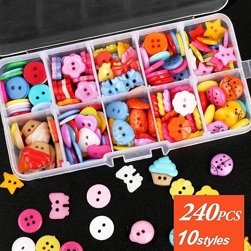 GLOBALDREAM Boutons Enfants, 240 Pièces Bouton Couture Boutons en Résine pour Toutes Les activités de Loisirs créatifs, Tricot, comptage, triage des Tailles, Multicolore