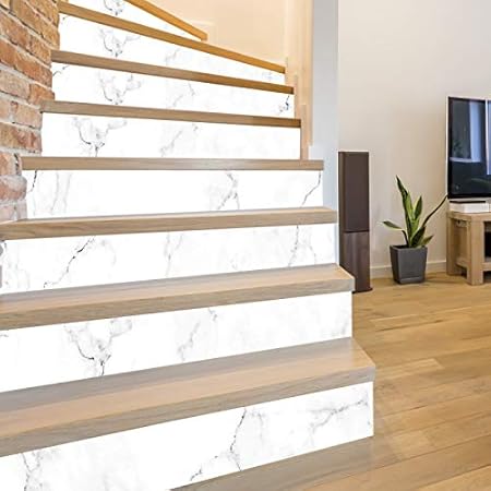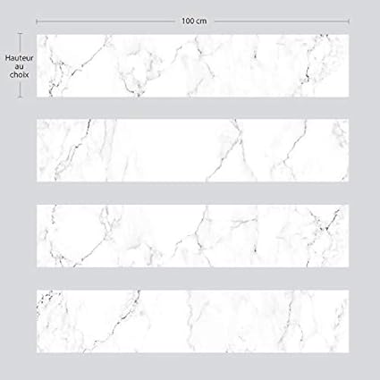 Contremarche PVC 1 mm - Lot de 4 - Dimensions 100 x 15 cm - Visuel MARBRE BLANC - Contremarches PVC Pour Escaliers avec Doubleface - 4 Bandes