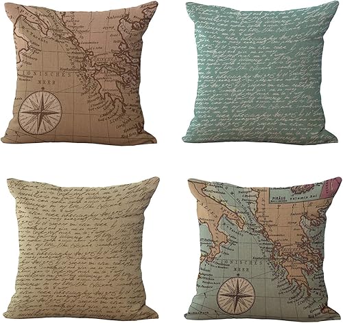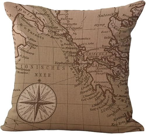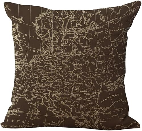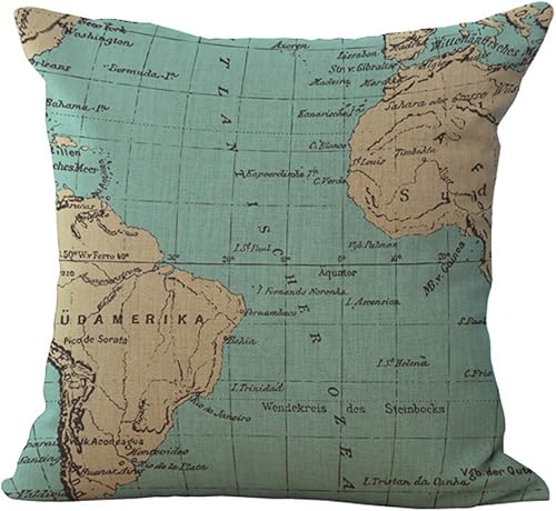 Hengjiang Housse de Coussin en Lin et Coton Style Vintage Méditerranéen Motif Carte du Monde