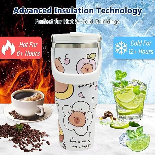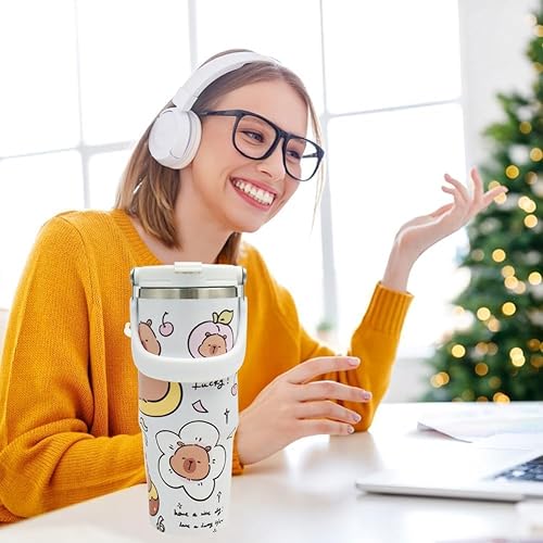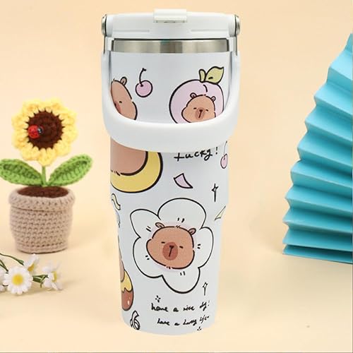 MKKZLPN Capybara Gobelet isotherme de 30 oz, double paroi en acier inoxydable avec couvercle, gobelet de voiture, tasse à café, pour boissons chaudes et froides