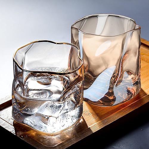 ZYLLZY Lot de 2 verres à whisky irréguliers de 280 ml - Cadeau ambré pour homme - Pour margarita, bourbon, scotch, boissons mélangées