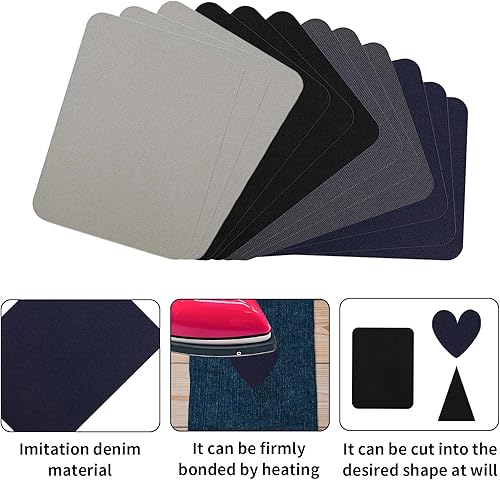 Lot de 12 patchs thermocollants en tissu à repasser - Pour vêtements, chaussures, chapeaux - Différentes couleurs - Pour vêtements, chaussures, chapeaux