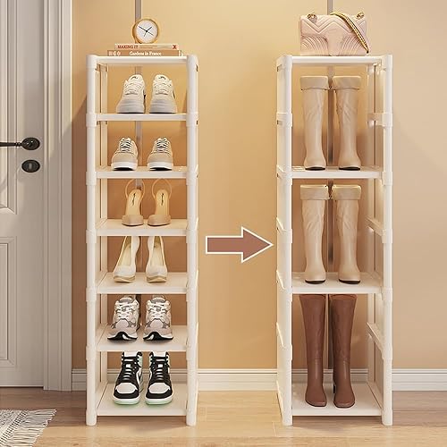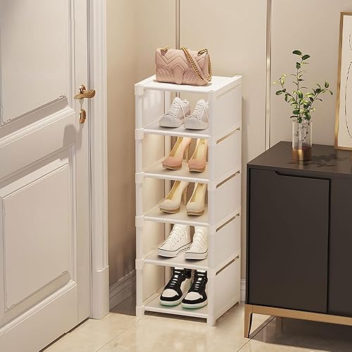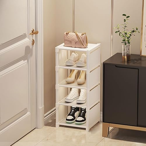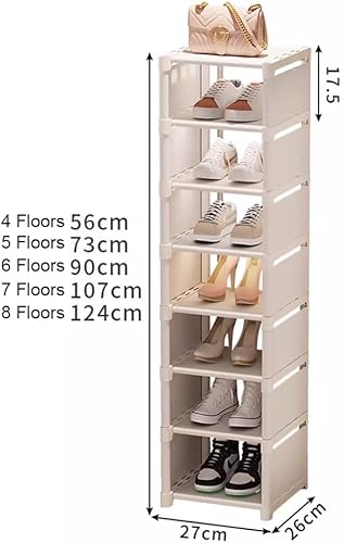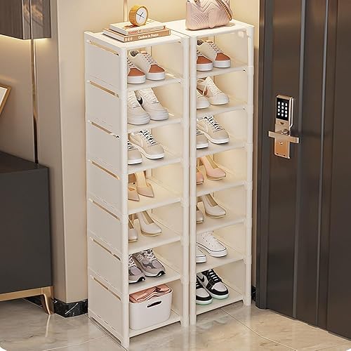 Vllcsla Étagère à Chaussures Blanche étroite à 8 Niveaux - Organisateurs de Chaussures Peu Encombrant, 1 Niveau pour 1 Paire de Chaussures, Range-Chaussures Empilable pour Couloir, Chambre à Coucher