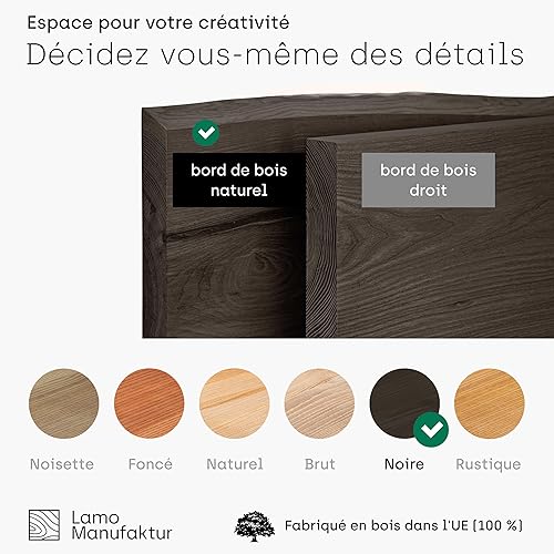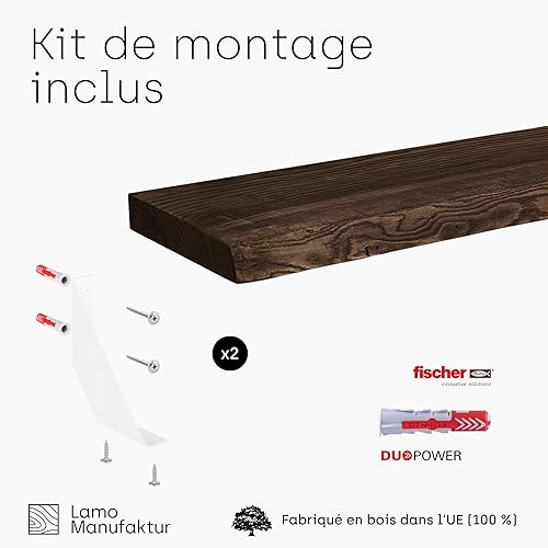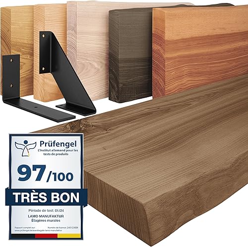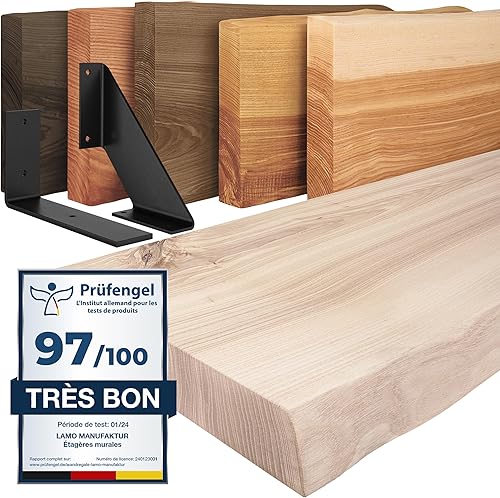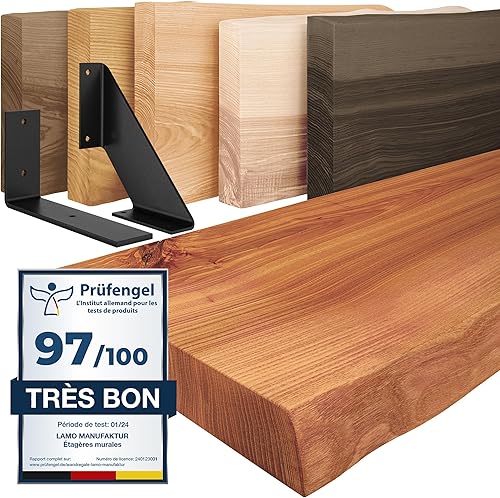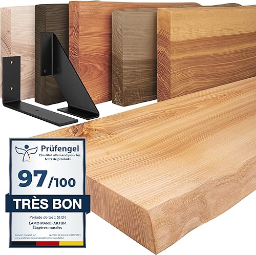 LAMO Manufaktur étagère Murale en Bois Massif, irrégulier, étagère de Rangement Vintage, Bois Naturel/équerre Noire 100cm, LW-01-A-002-100VS