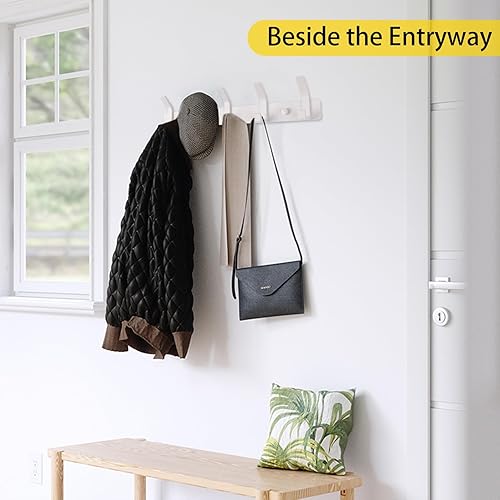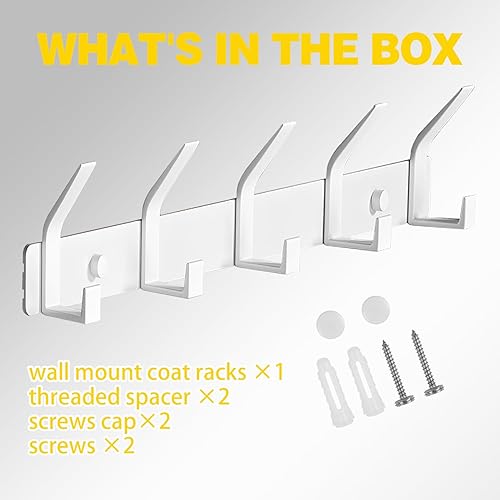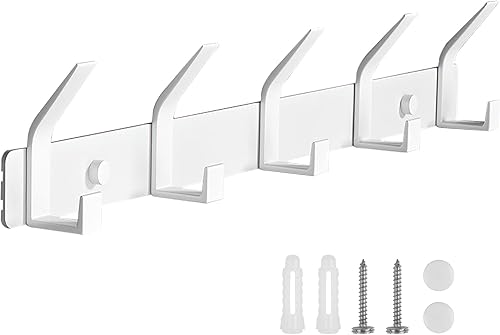 Porte Manteau Mural, Patère Murale avec 5 Crochets, Doubles Porte-Manteau Mural en Acier Inoxydable, Patères Crochet Mural Crochets Muraux, Porte Manteau Salle de Bain pour Salon Chambre, Blanc