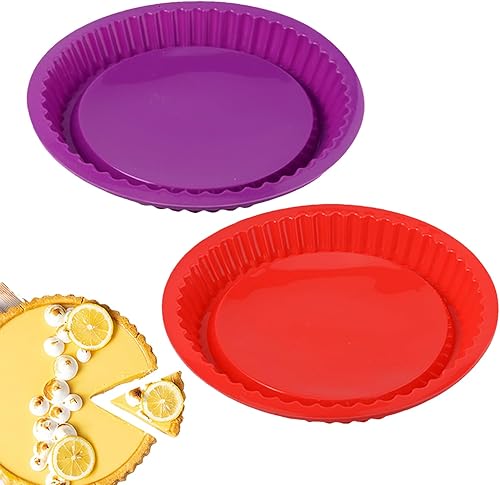 2 Piece Plat a Tarte Silicone Moule a Tarte en Silicone Moule en Silicone Patisserie Rond Revêtement Antiadhésif Réutilisables, Professionnel, Resistant, Cuisson Parfaite et Démoulage Impeccable