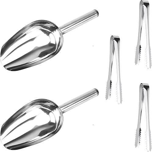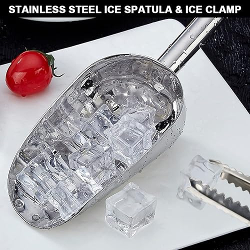 Acier Inoxydable Pelle à Glace Et Pinces à Glaçons, 3 Pces à Glace et 2 Paires de Pinces à Glaçons Bar Scoops Tongs pour la Fête D'été Mariage Cuisine Bonbons Café