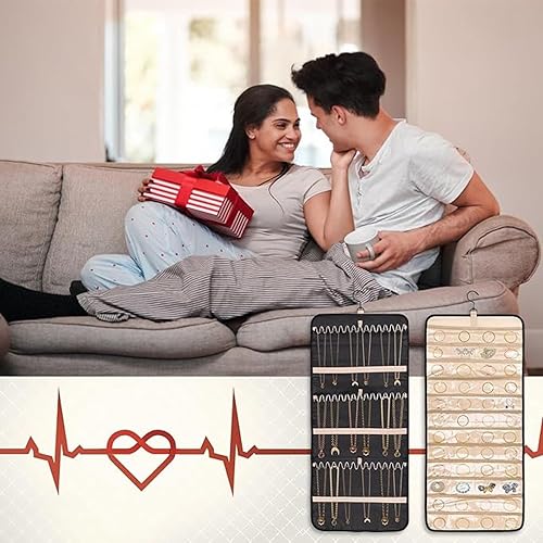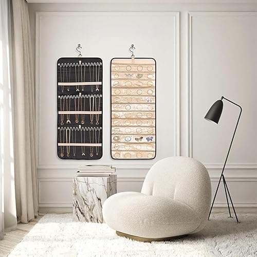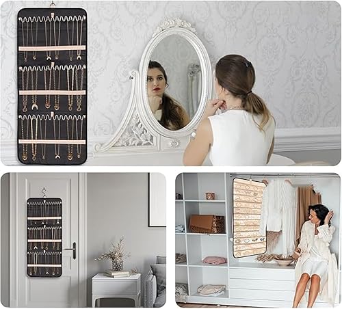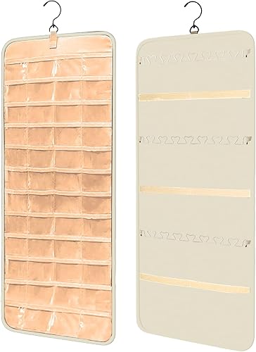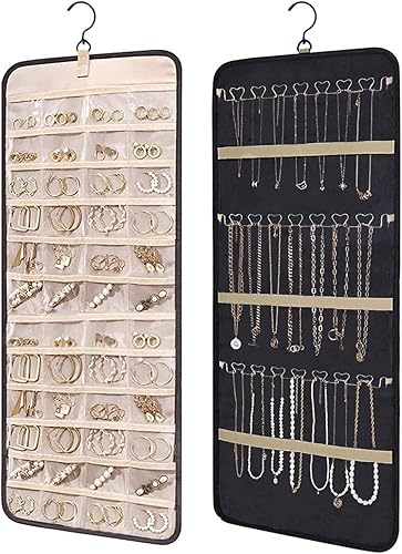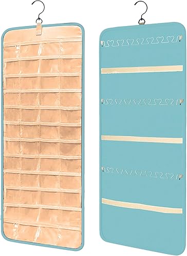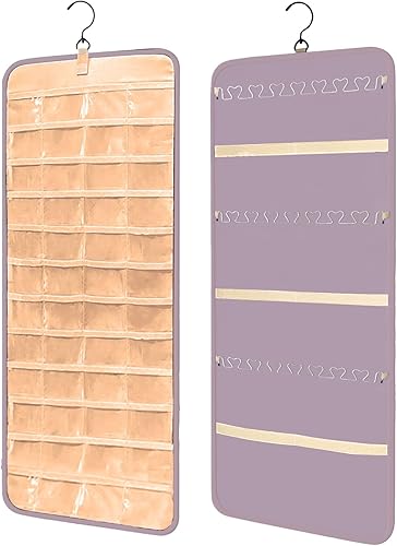 Porte-organisateur de bijoux suspendu,sac de rangement pour boucles d'oreilles,armoire de rangement de bijoux double face 48 poches Sac de rangement transparent,colliers,boîte de présentation,pourpre