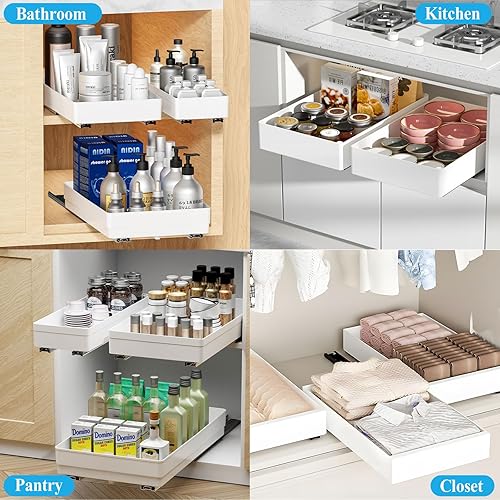 NEMMXUB Tiroir Coulissant Cuisine, Rangement Coulissant Placard Cuisine, Bac Coulissant Placard Cuisine, Organisateur D'Armoires De Cuisine Pour Armoires de Cuisine, Organisateur de Tiroirs