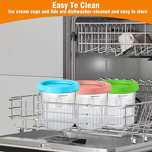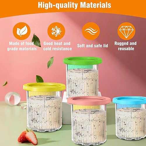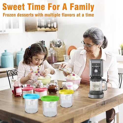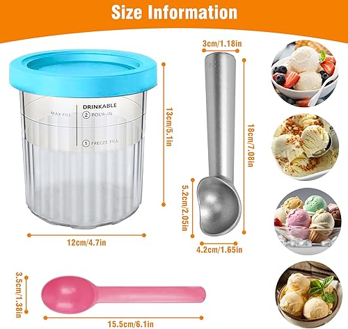 4 Pièces Récipients Crème Glacée Rechange avec 4 Couvercles & Cuillère, Bacs Machine Glace Réutilisables, Seau Alternatives Sorbetières Sans BPA, Accessoires Pintes Glaces pour NC501/NC500 Series