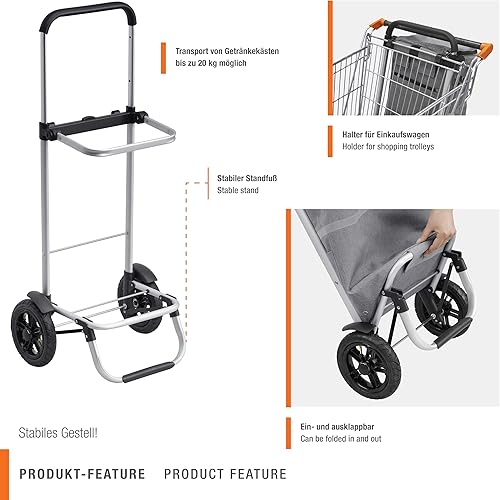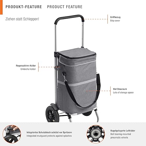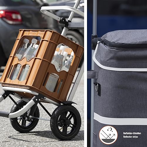 Meister Chariot de courses - 45 l - Pneus gonflables de qualité supérieure - Avec sac isotherme et poignée télescopique - Matériau résistant à la pluie - Suspension pour chariot de courses/chariot