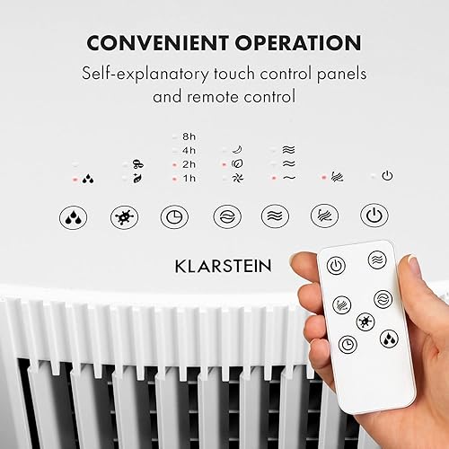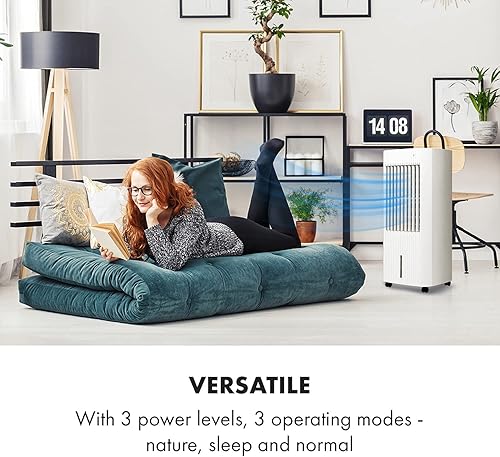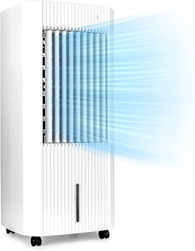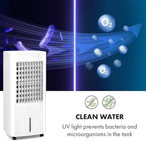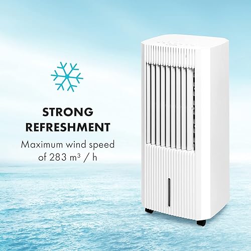 KLARSTEIN Iceberg Pure - Rafraîchisseur d'air, 283m³/h, 65W, Réservoir 5 L, Blocs réfrigérants, Fonction oscillation, Mobile, Roulettes, Filtre à poussière, Vent naturel - Blanc