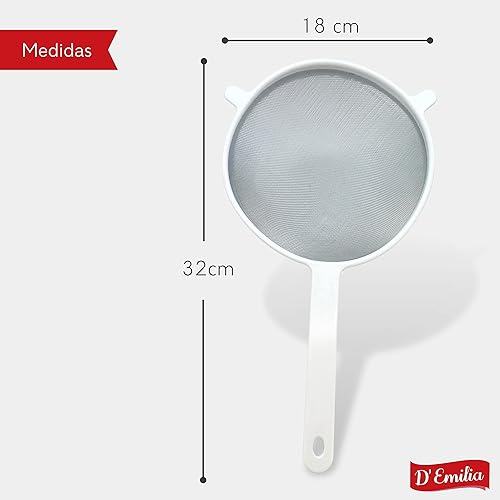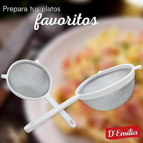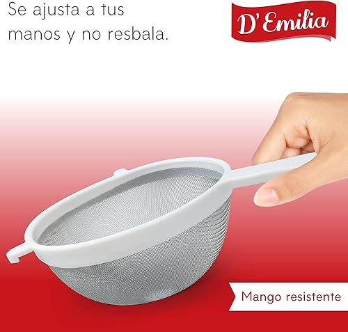 D'Emilia - Passoire en plastique pour cuisine avec maille en acier inoxydable, passoire à mailles fines pour égoutter les légumes, pâtes, riz (16 cm)