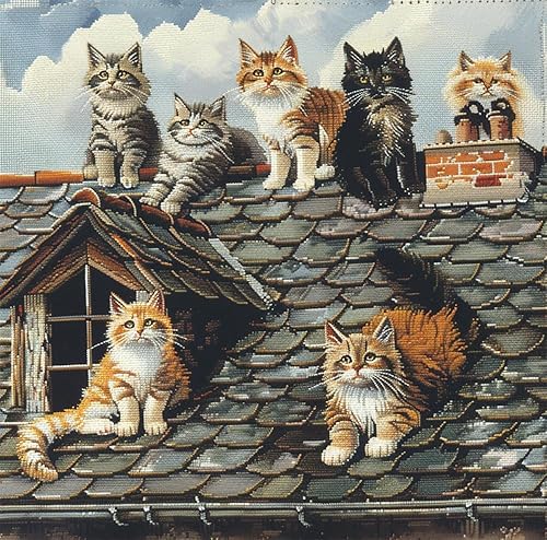 Kit Crochet De Verrouillage Tapis Diy Broderie Pour, Chat Debout Kit Tapis Point Noué À Faire Pour Débutants,Adultes Ou Enfants,Latch Hook Canevas Coussin Point 43X43Cm