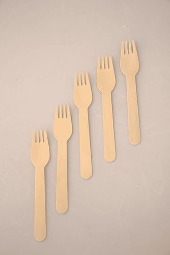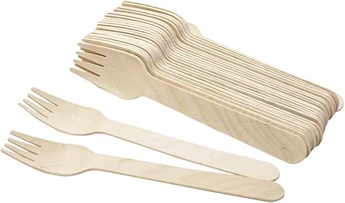 Evercups 100 fourchettes en bois 16cm fourchettes jetables Couverts jetables en bois biodégradable, sans plastique, Compostable