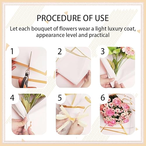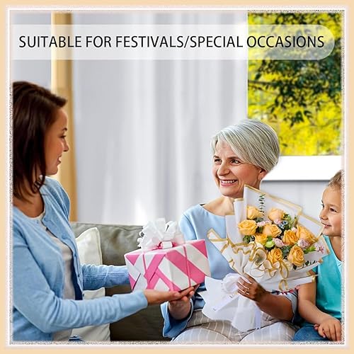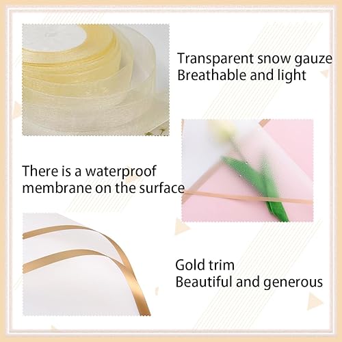 20 Feuilles de Papier Cadeau Fleuriste Imperméable (58x58 cm), Emballage avec Ruban pour Bouquets/Artisanat, Papier Emballage Fleuriste Papier Bouquet de Fleur