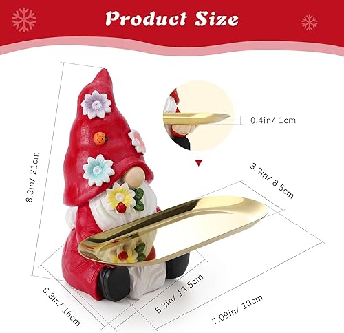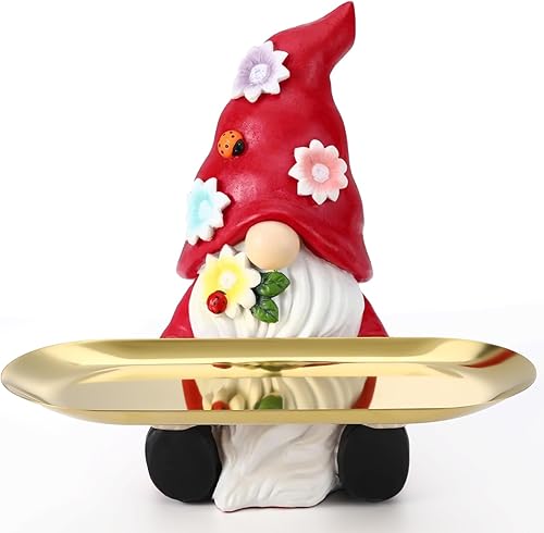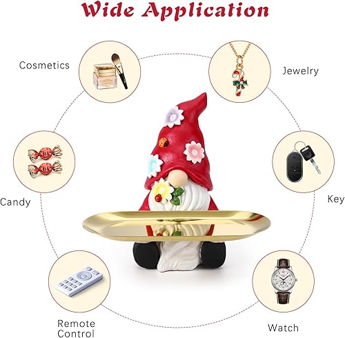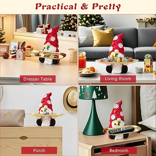 Emibele GNOME Statue Plateau Décoratif, Plateau Décoratif Pour Table Entryway Bureau et Home Decor, Candy Tray Pour Porte-clés Bijoux Boucles d'oreilles Montre Trinket Dish, Décoration de Noël, Rouge