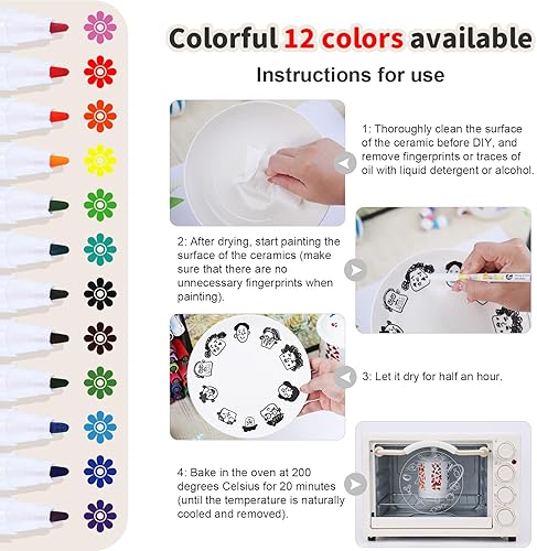 XULIERUX 12 Couleurs Ensemble De Peinture Sur Porcelaine, Waterproof, Stylo Acrylique 1.0mm, Feutre Pour Porcelaine Lave Vaisselle, Utilisable Au Four
