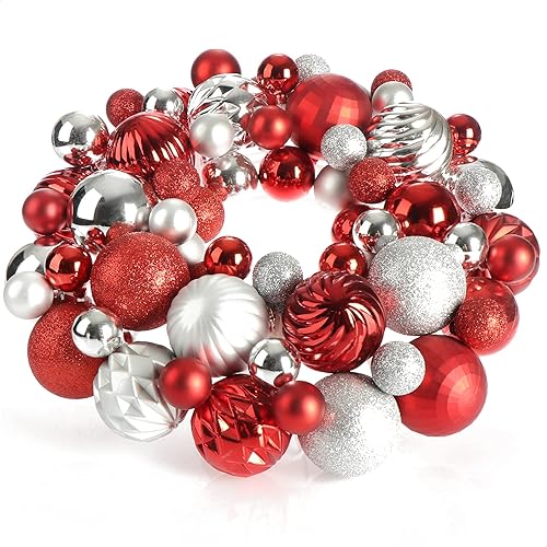 com-four® Couronne de Porte de Noël - Couronne de l'Avent avec diverses Boules de Sapin de Noël dans de Belles Couleurs Ø Environ 32 cm - Superbe décoration de Noël Brillante - Couronne de Table