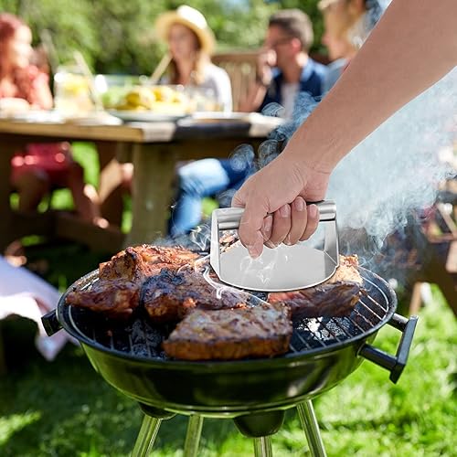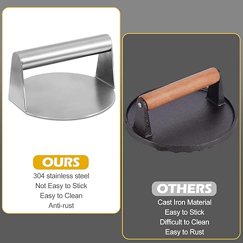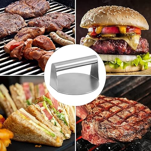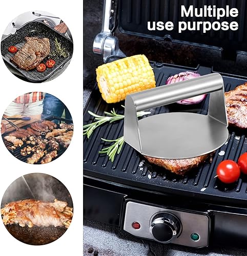 icyant Presse à Hamburger, Presse à Viande Robuste 5.51in Acier Inoxydable Presse Hamburger en Antiadhésive Version Améliorée Ronde Bacon Presse Presse à Viande Presse pour Panini Griller Steak Burger