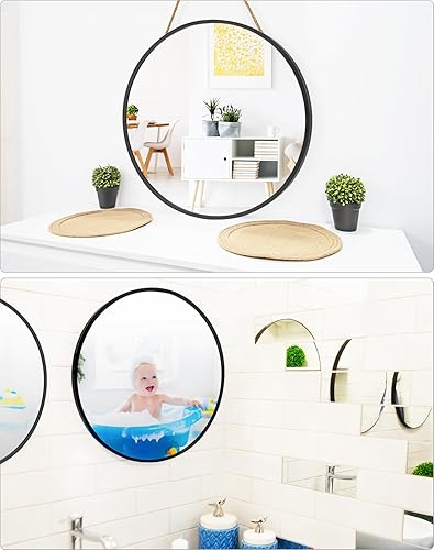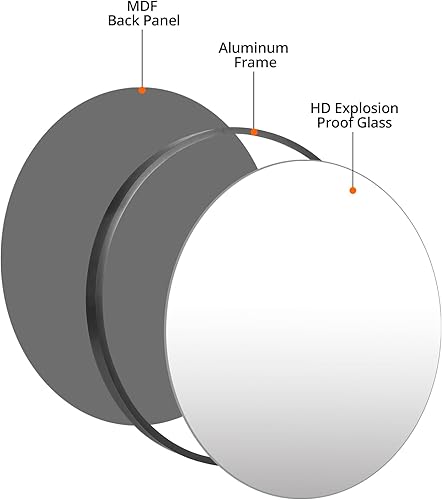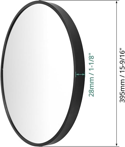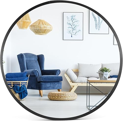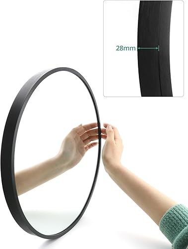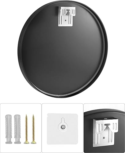 QWORK® Miroir Mural Rond Ø50cm - Verre HD Antidéflagrant - Cadre Noiren Alliage d'Aluminium - Clou Mural Autocollant Inclus