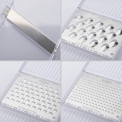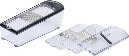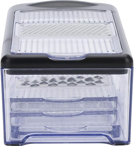 Westmark Set de Râpes/Trancheurs avec 4 inserts de Coupe et Récipient Collecteur, Acier inoxydable/plastique, Technicus Quadro, Transparent/noir/argenté, 14352260