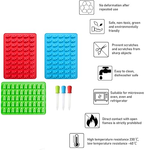 3 Pièces Moules à Bonbons Moules à Bonbons en Silicone Moule Chocolats avec 3 Compte-Gouttes pour Faire Gelée Chocolat Bonbon Biscuit Savon