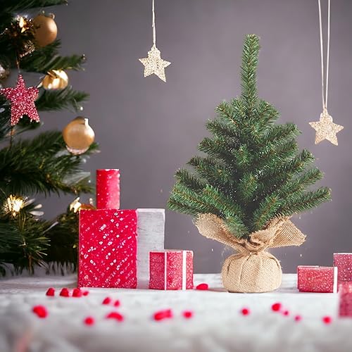 MIJOMA - Mini sapin de Noël magique | Sapin de Noël artificiel dans un sac en toile de jute | Élégant et décoratif | Sûr et stable avec des aiguilles douces | Parfait pour une atmosphère chaleureuse |