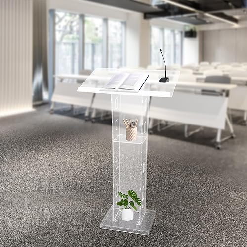 Tagtuell Pupitre en acrylique transparent Podium Bureau Chambre, Pupitre transparent pour salle de classe, table de conférence professionnelle en chaire 60 x 40 x 110 cm