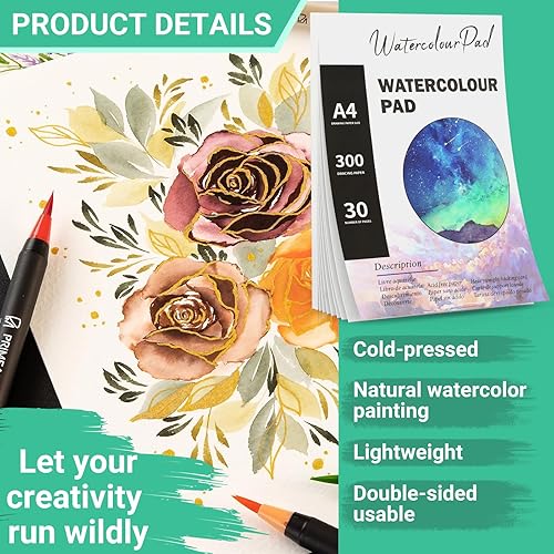 Bloc de peinture A4 300 g/m² – 30 feuilles de papier aquarelle, aquarelle papier idéal pour aquarelles, bloc de papier aquarelle parfait pour débutants, étudiants et artistes.