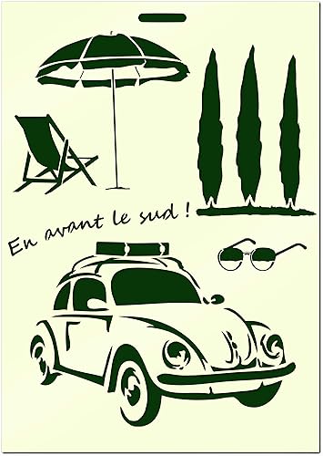 POCHOIR MYLAR Format A4 (21 * 29.7cm) Coccinelle WW en vacances