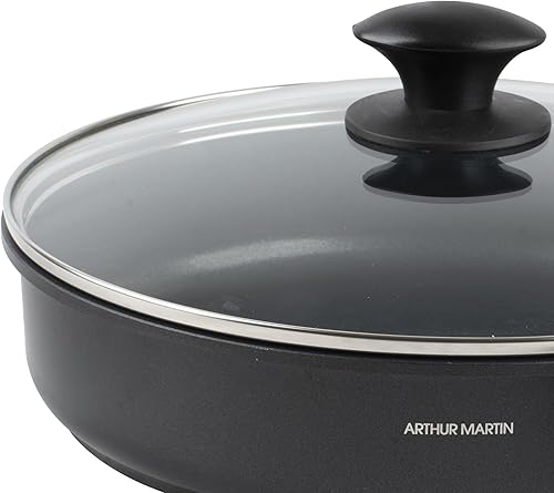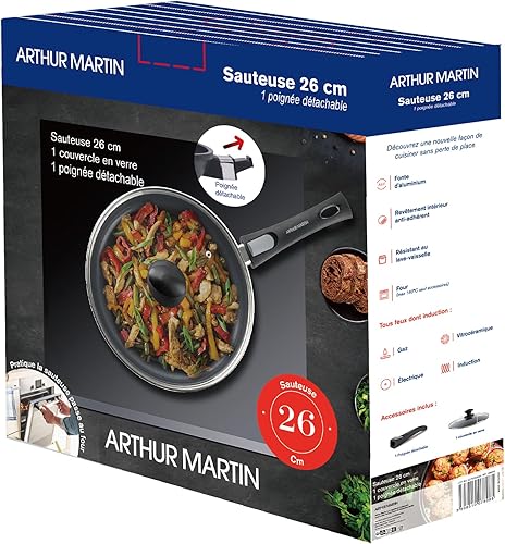 Arthur Martin - Sauteuse 26 cm avec couvercle - Fonte aluminium revêtement anti adhérent anses et poignées détachable - Tous feux dont induction - Passe au lave-vaisselle, Noir