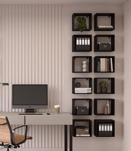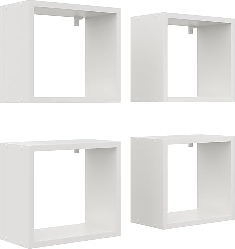 KUBUTKU Modern Lot de 4 Etagere Murale Design carrées 30 x 33 x 18 cm Bibliotheque Murale Suspendue pour Salon Chambre Bureau et Cuisine - Blanc