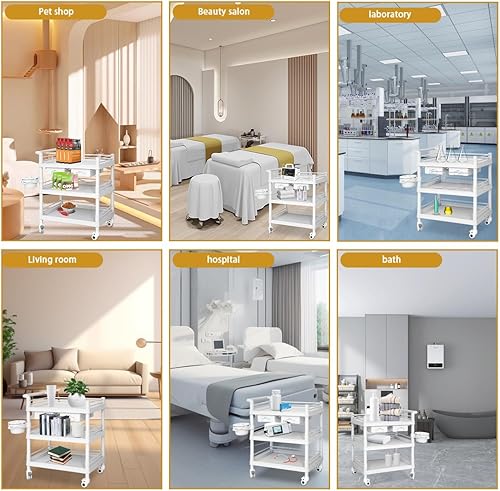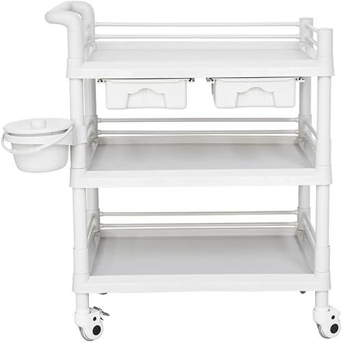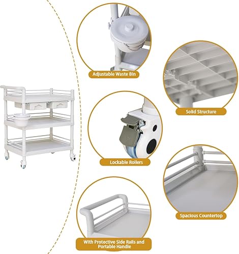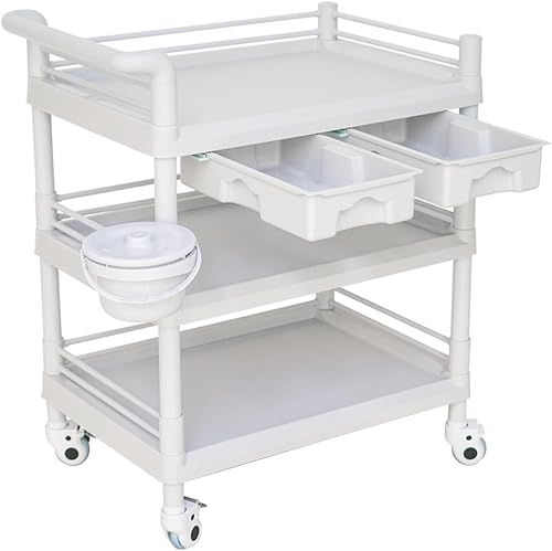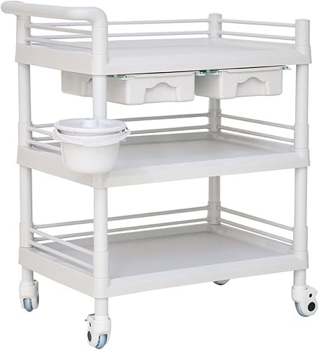 CStern Chariot multi-usages avec roulettes, chariot de cuisine avec tiroirs, chariot de rangement à 3 niveaux, chariot de service avec poubelle à déchets, chariot de laboratoire, chariot médical,