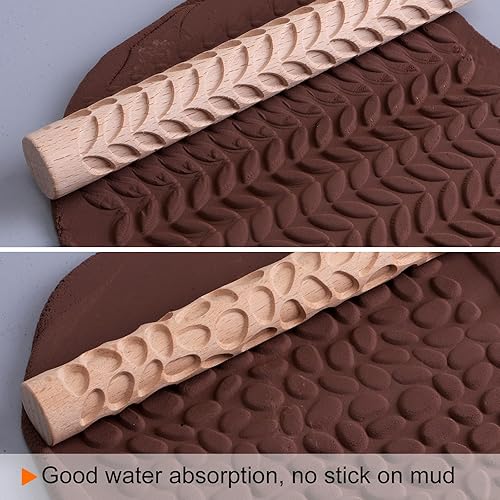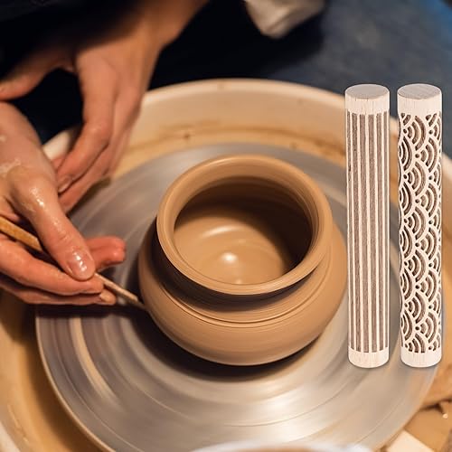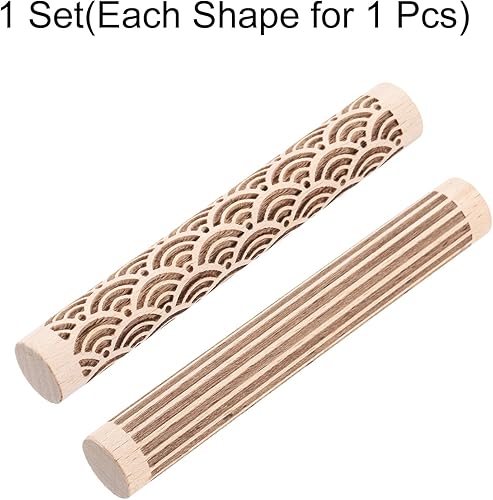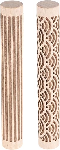 sourcing map Lot de 2 rouleaux d'argile en bois de 10,2 cm avec lignes droites et motif vagues - Outils de poterie - Rouleaux de texture de grain de bois pour argile - Pâte à modeler
