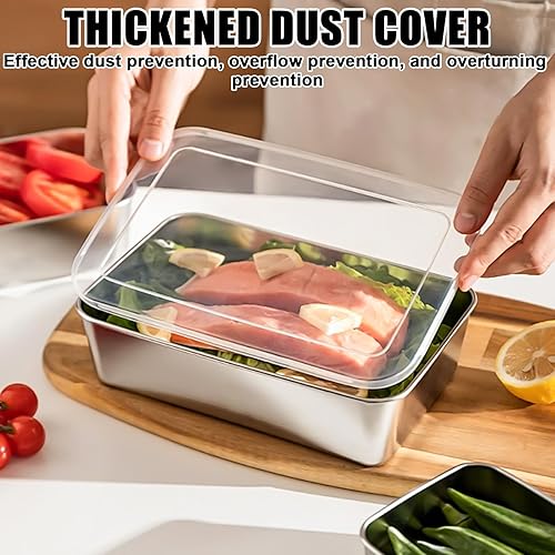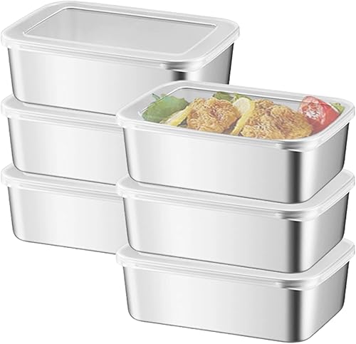 Asfrode Lot de 6 boîtes de conservation empilables en acier inoxydable avec couvercle - 1100 ml - Pour fromage, fruits, salades, bonbons, confitures, four, congélateur